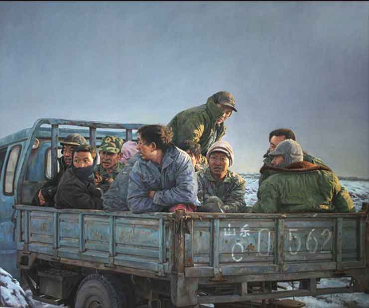 “崔先进的《曙光》以几个农民工在运输车里赶路的情景,寓意了当代农民这种游走性的社会身份。城市化使农民身份发生了变化,他们是农民,但却离开了土地,他们到城市谋生却没有市民的待遇。”对于这幅作品,美术评论家尚辉曾如是评价。《曙光》正因透析了当下农民工生存中的无助与困惑而直击观者内心,它以直面底层生活的人性化表述在全国第十一届美展中脱颖而出,获提名奖。