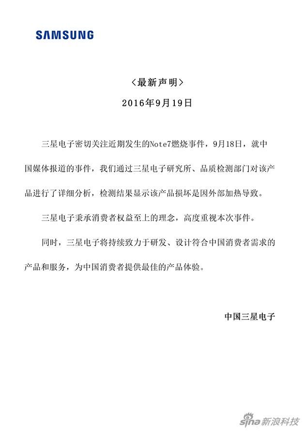 三星电子中国公司则表示,三星电子研究所、品质检测部门对产品进行了详细分析,检测结果显示该产品损坏是因外部加热导致。