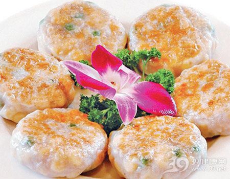 3.加蟹肉拌匀,摘成小面糊,放进平底锅,用小火煎至两面金黄色即可。