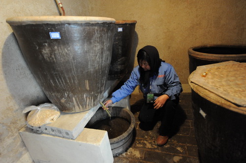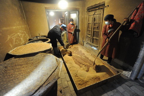 2016年11月份,八里庙民居记忆馆落成,为了传承非物质文化遗产“西三益酿造工艺”,特在老居设系列工坊,以纯粮为原料,按传统工艺,由“西三益”第九世传人胡正功、胡正文负责酿造技术及管理,进行酿造陈醋等产品,方便居民生活食用。(摄影报道/成国栋)