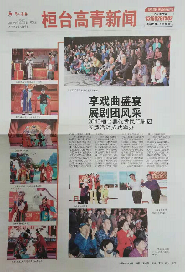 全年以“乡情乡音”为品牌,开展“一村一年一场戏” 活动342场次、“送戏进校园”40场次;举办“文化助梦 舞动桓台”2019桓台县广场舞大赛、“不忘初心 放飞梦想”庆祝七一文艺演出、新时代文明实践专场全县文艺巡演、 “庆六一”少儿书画摄影大赛、“放飞的童心”桓台县第十三届器乐电视大赛等29场大型品牌活动及赛事。组织参加淄博市2019舞蹈电视大赛、第十六届全市优秀民间剧团大展演、2019淄博市第九届合唱艺术节等赛事。