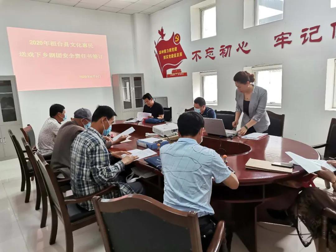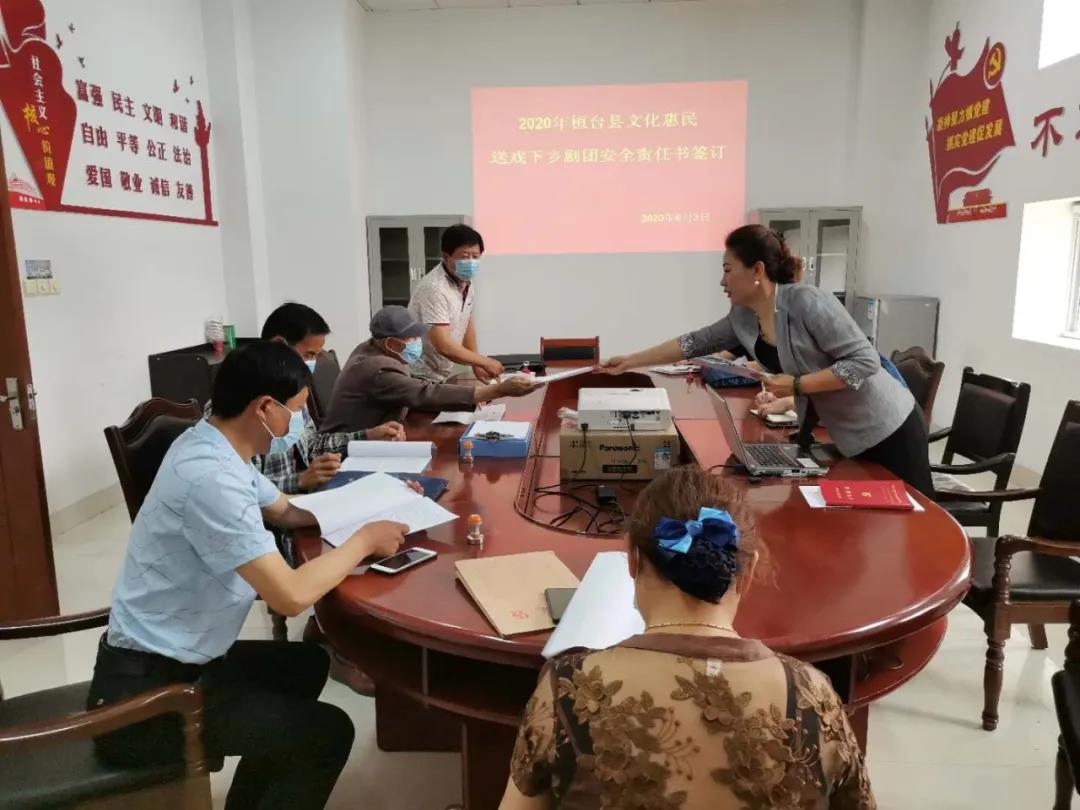 根据淄博市文化和旅游局印发的关于《淄博市送戏下乡文化惠民活动监督考核办法》的通知和《淄博市送戏下乡文化惠民演出活动监督考核办法》为贯彻落实省、市文化和旅游工作会议精神,提升送戏下乡惠民演出服务质量和群众满意度,确保财政补贴资金安全有效,更好地满足群众对文化生活的新需求。桓台县文化馆于2020年6月3日,召开了2020年桓台县文化惠民送戏下乡剧团资质审查会和2020年桓台县文化惠民送戏下乡剧团安全责任书签订。