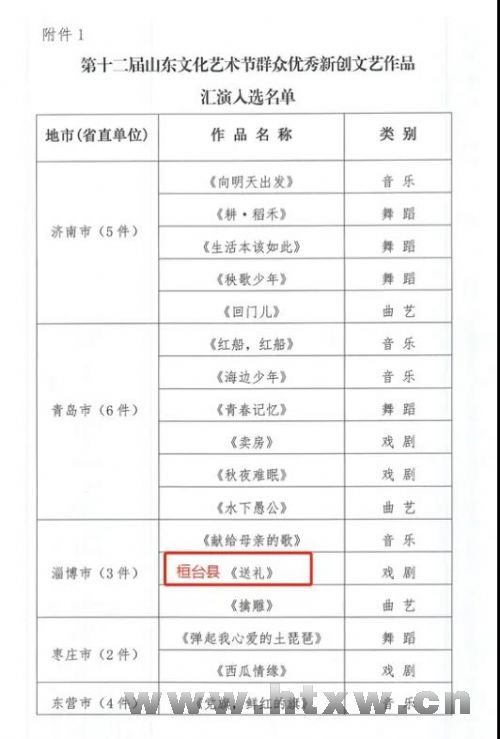 山东文化艺术节是山东省最高规格、最大规模的综合性文化艺术盛会。山东省文化和旅游厅自2020年在全省组织开展群众艺术优秀新创作品征集工作,各地群众文艺工作者坚持以人民为中心的创作导向,围绕建党百年、乡村振兴、全面小康,围绕弘扬红色文化、传承红色基因等主题,新创685件群众文艺作品。省文化和旅游厅组织专家先后评选出80件作品,分别于2020年11月和2021年4月面向社会公示,我馆作品《送礼》成功入选。