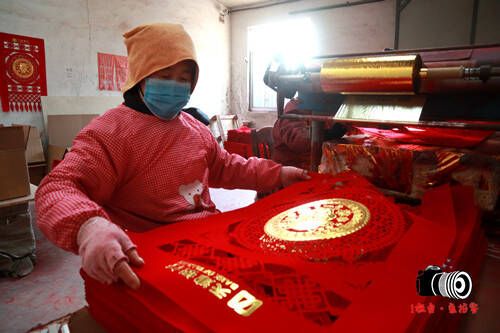 田国做“落门钱”,是一种家族的文化传承,传承他到这儿是第四代了。十五年前田国开始不断创新制作流程与工艺,“落门钱”由原来的家庭小作坊也变成小工厂,花样品种也越来越多,制作“落门钱”的纸张由红纸变成了红色的无纺布,烫金工艺让“落门钱”变得更加鲜艳更喜庆更绚丽多彩,加工方式由纯手工加工变成了机械化加工。