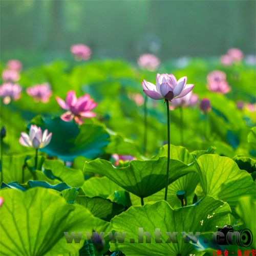 荷花,在清波翠盖的荷塘中,亭亭玉立,随风摇曳出千姿百态,携着一缕缕清香,给人们营造出一个清凉世界。