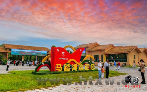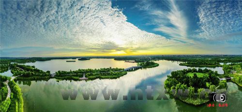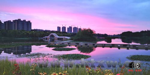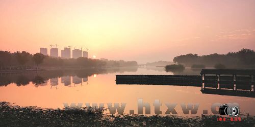 清晨,红莲湖朝霞漫天,晨雾飘荡,变化万千,美如画卷。沿着湖边小路,步入湿地公园,草浓树绿,霞光万丈,犹如置身一个五彩的宫殿。