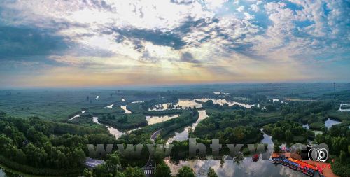 无论是清晨还是日暮,鸟瞰马踏湖,被一种大美所震撼,秋日的霞光,一点点盖过深蓝的天色,浸染天空,映在辽阔的湖面上,水天一色。