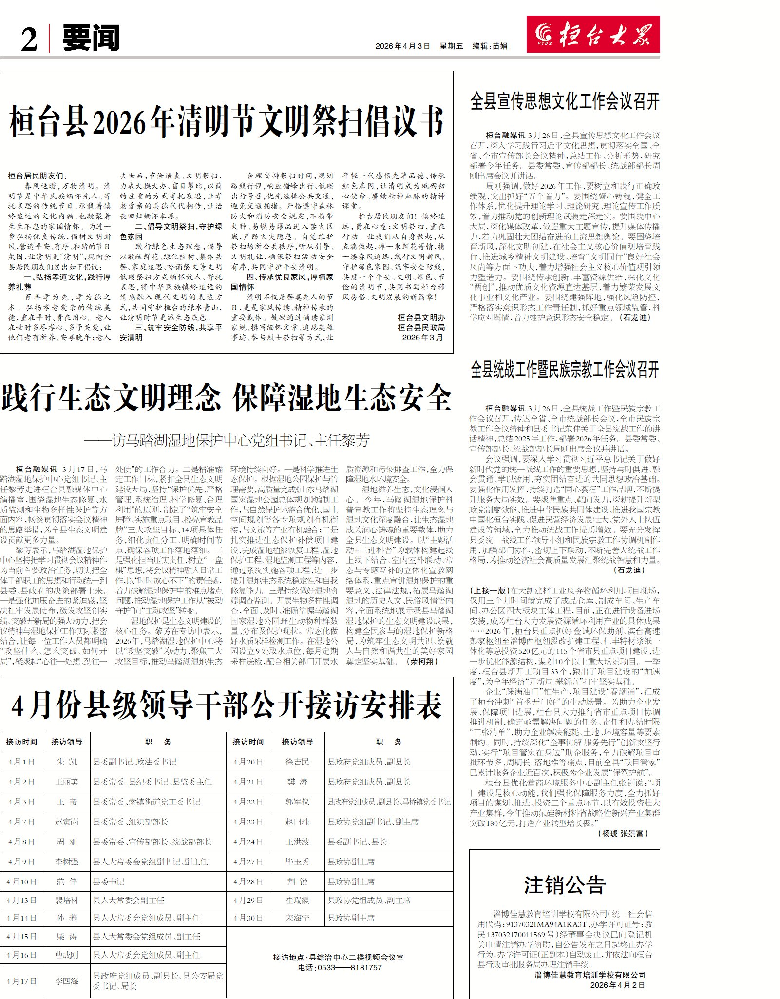 2026年4月1日桓台新闻