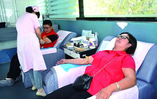 爱心志愿者挽袖献血