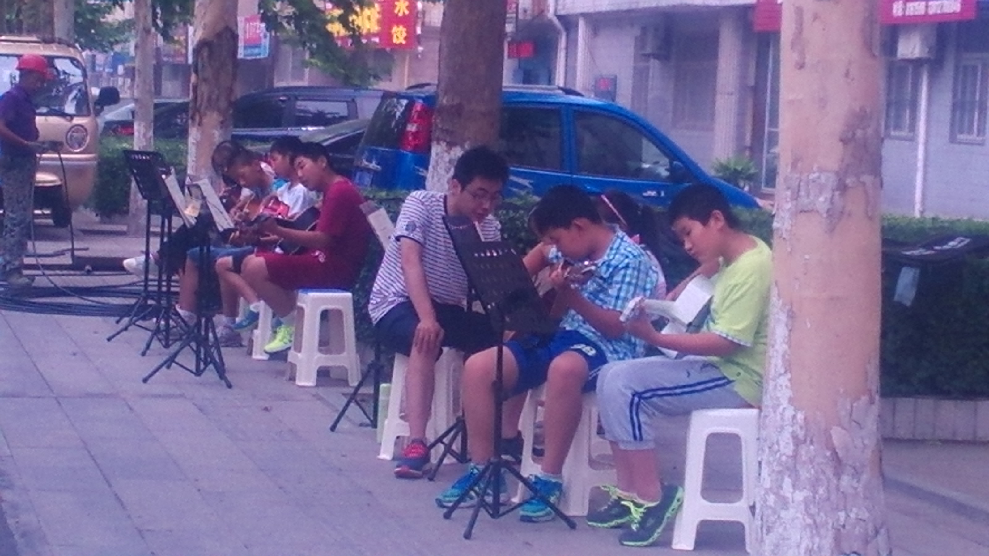 建设街上学习吉他的孩子