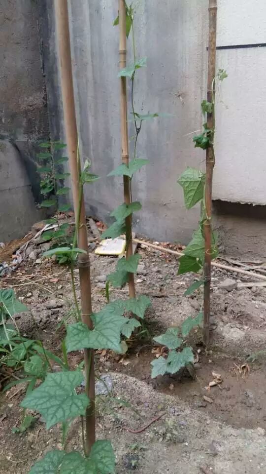 丝瓜藤上架。