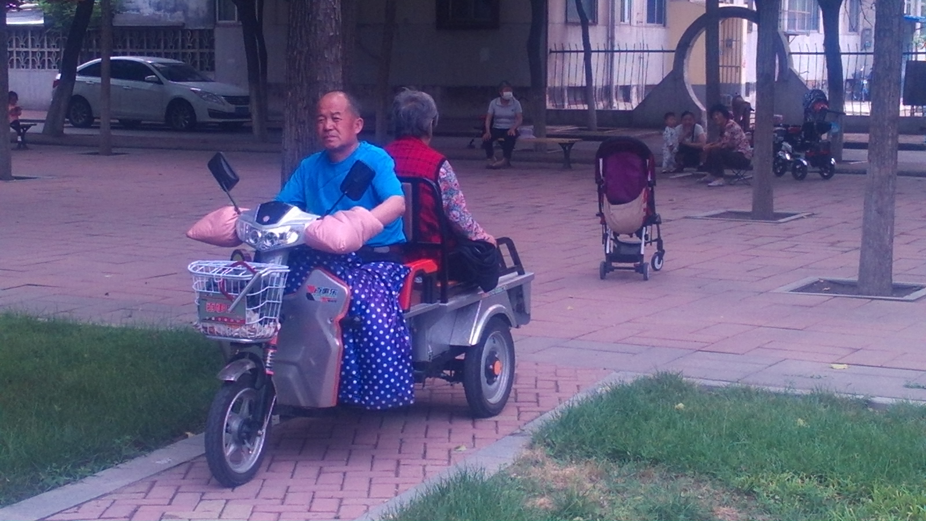 林荫道上横冲直撞的电动三轮车