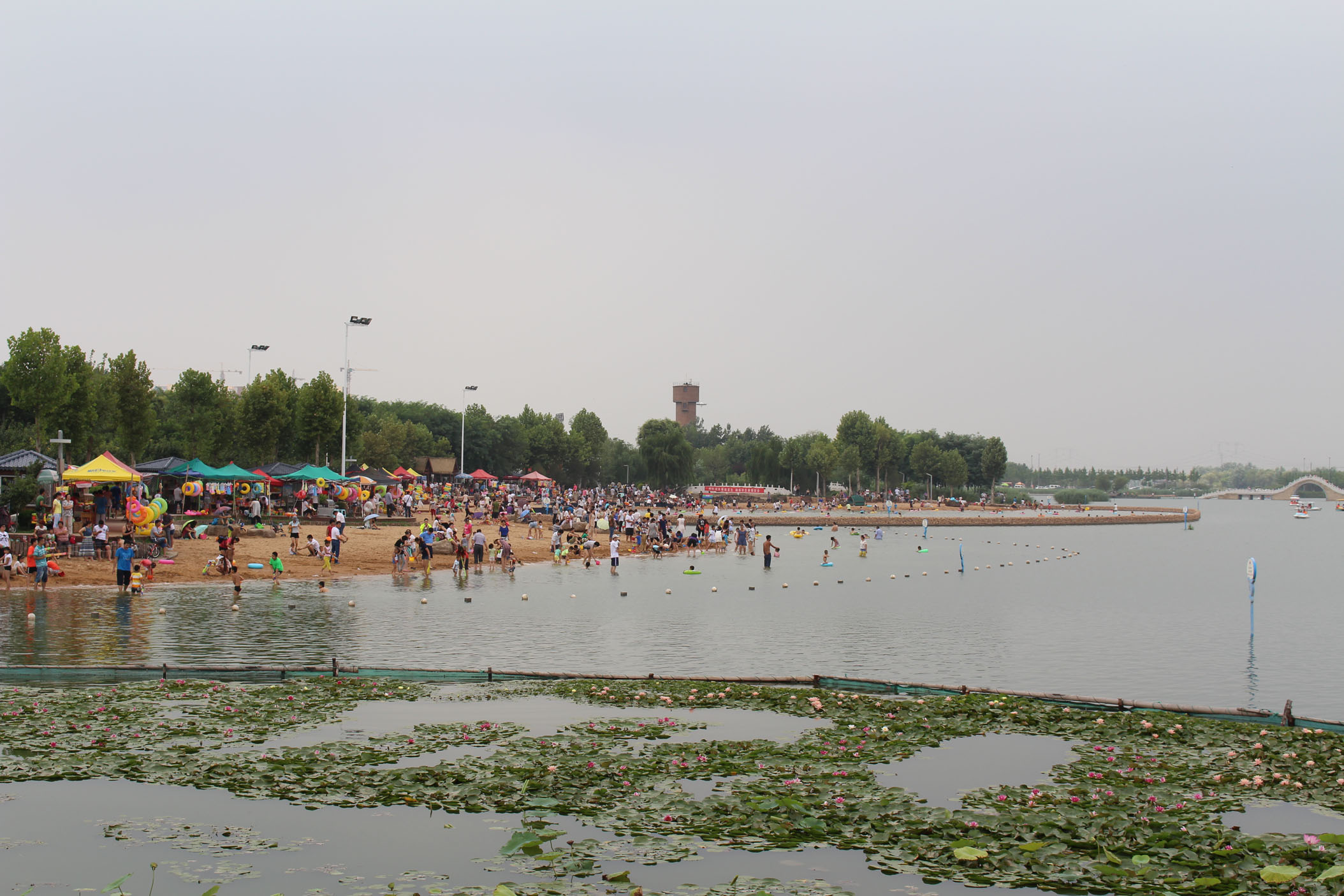 红莲湖沙滩游客多