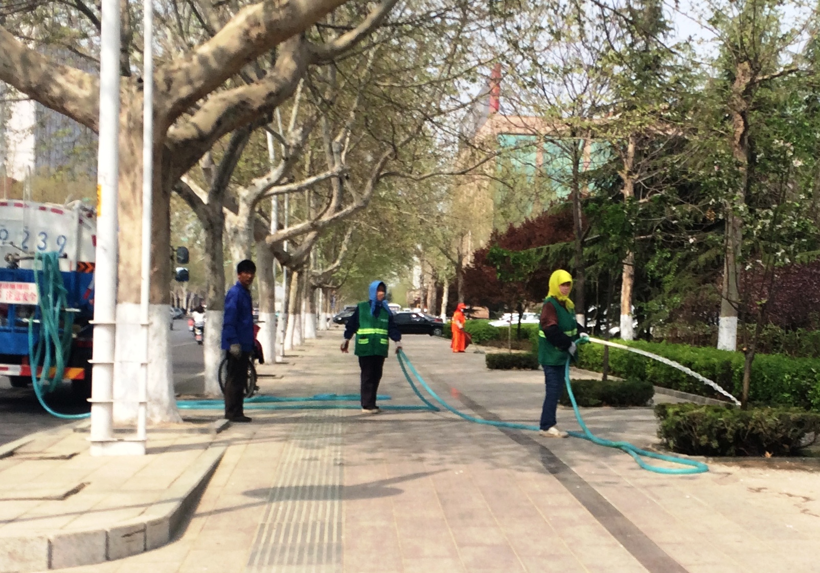 苗木“喊渴”,园林工人浇水忙 …
