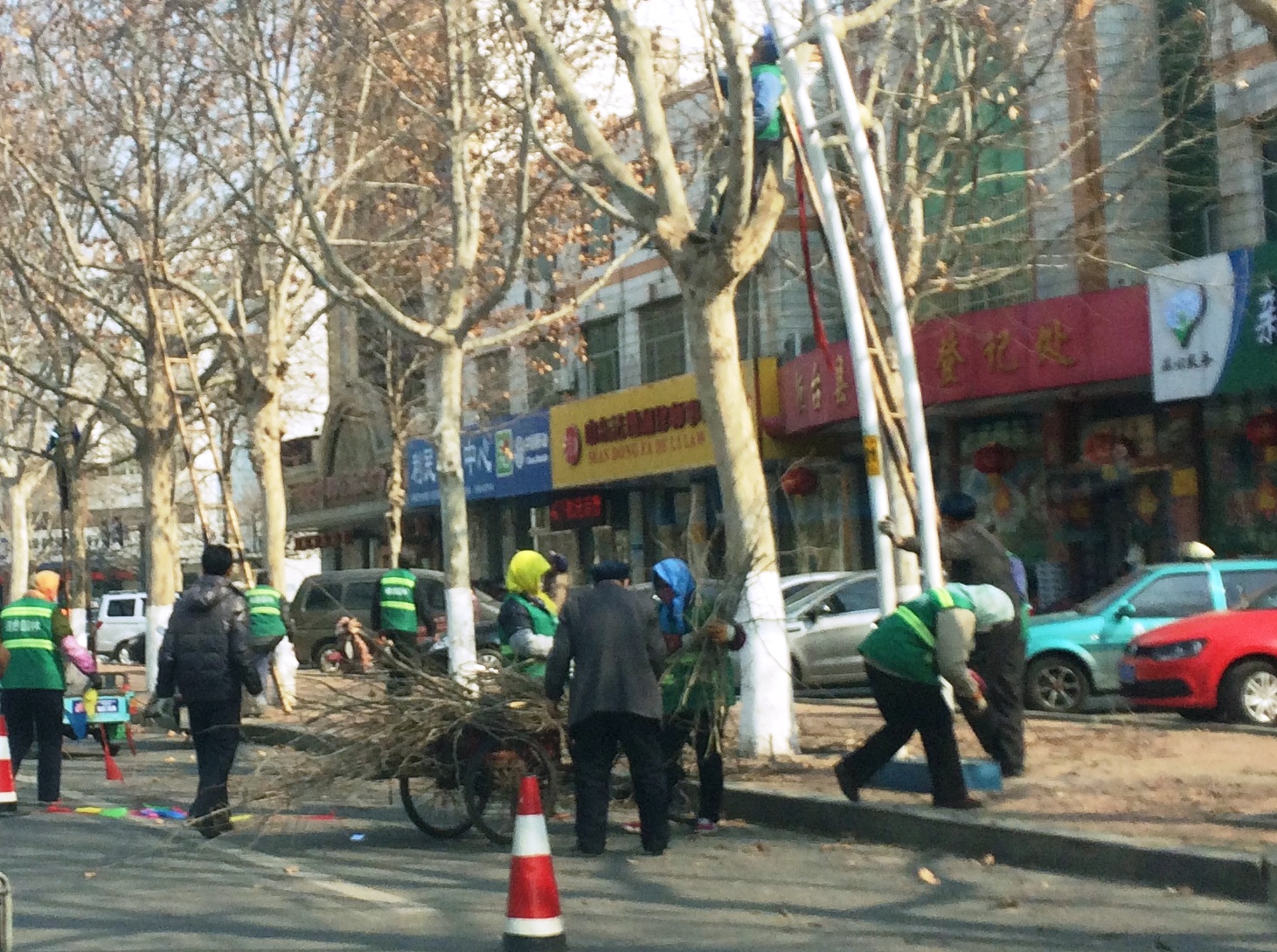 园林工人为树木剪枝修型 3月1…