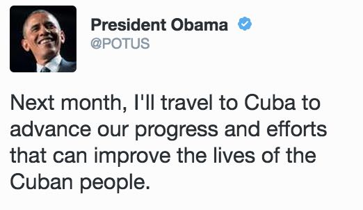 奥巴马宣布3月份将访问古巴