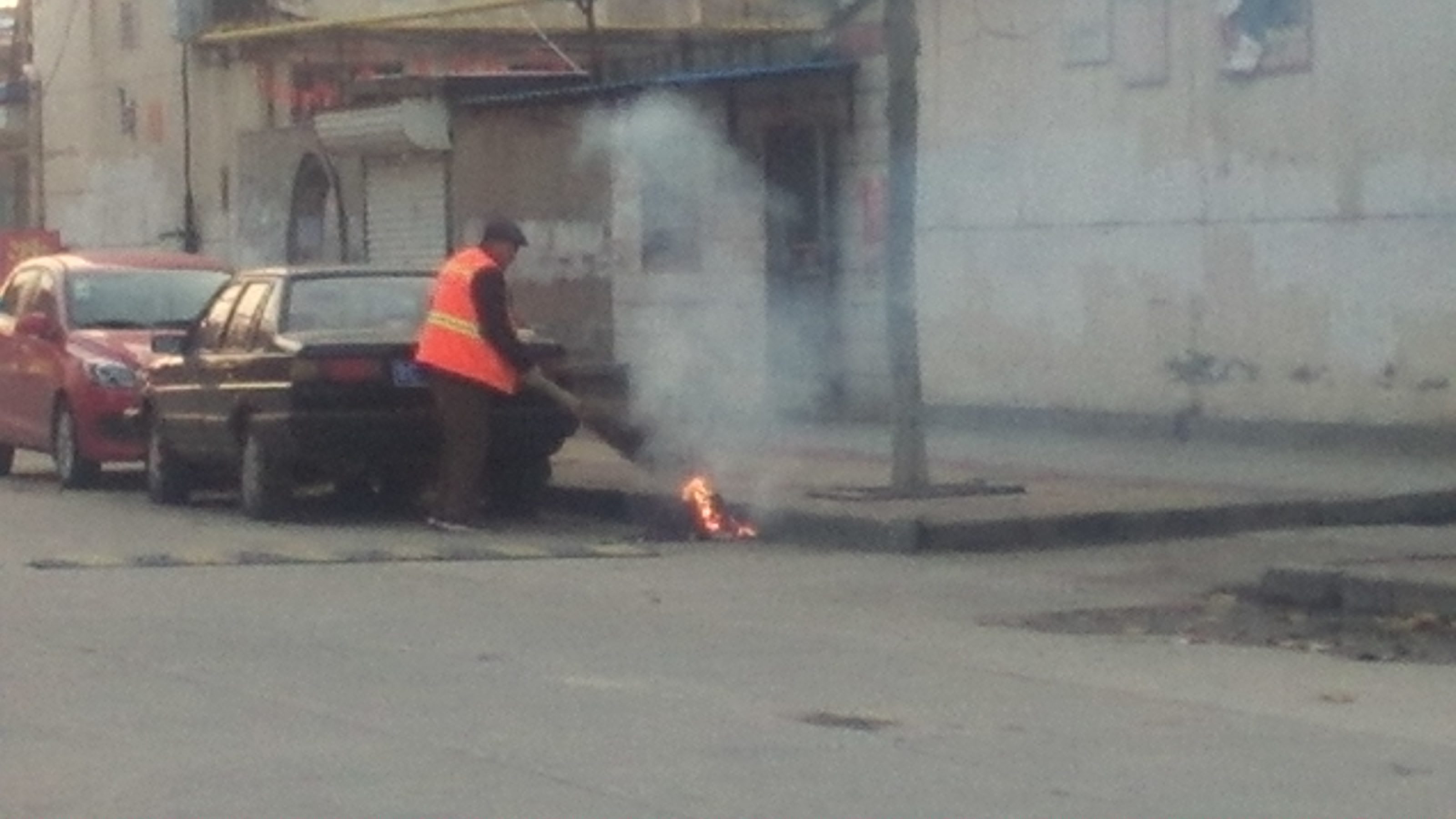 路边焚烧树叶烟雾滚滚