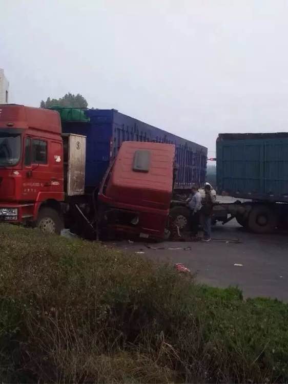 寿济路与张田路路口两大货车相撞…