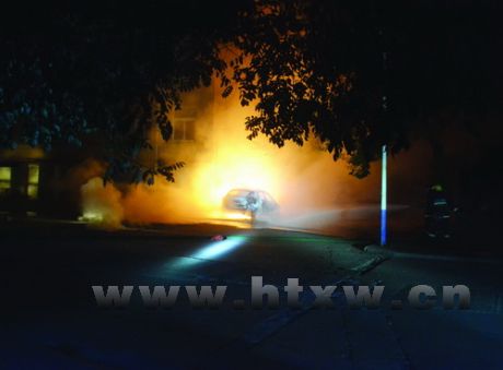 马桥镇前金小区内一辆汽车自燃