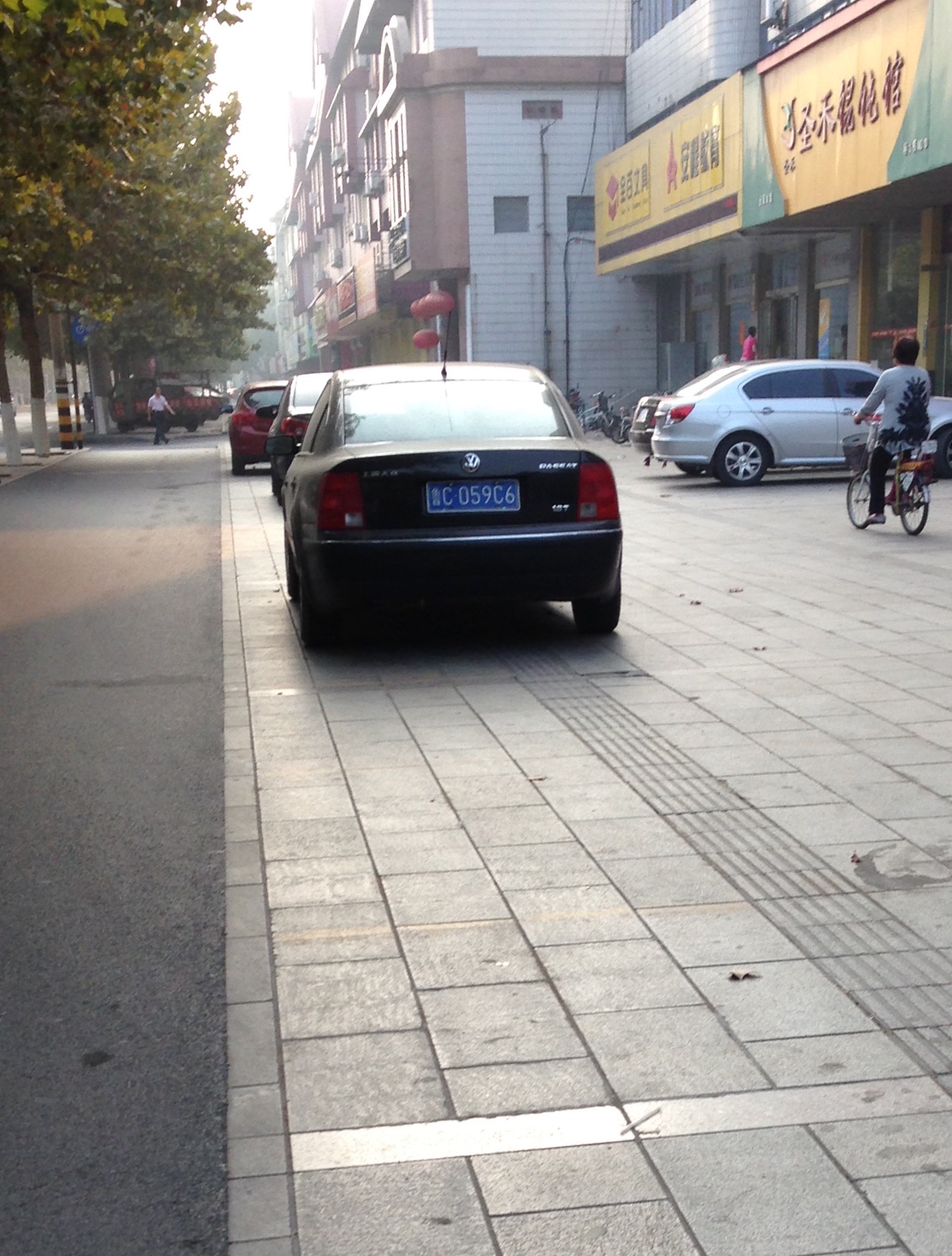 盲道上停了一排车,建设街盲道基…