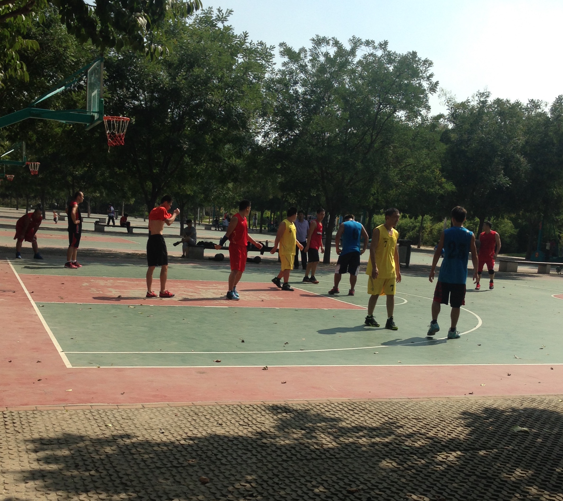 周末,文体中心打球的人们