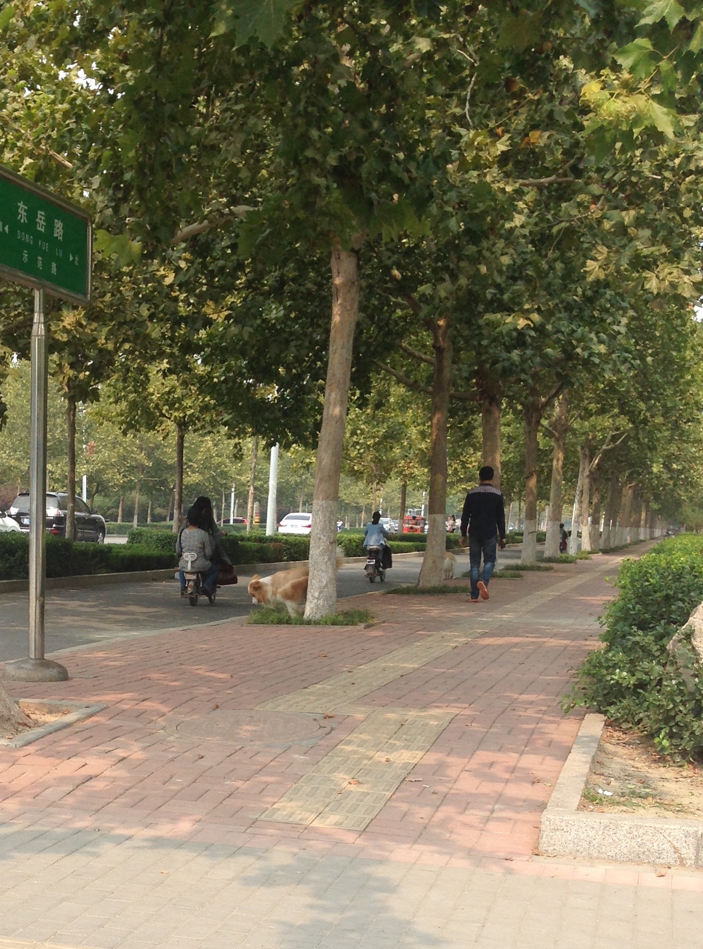 两条大狗没拴就在路上游荡,进来…