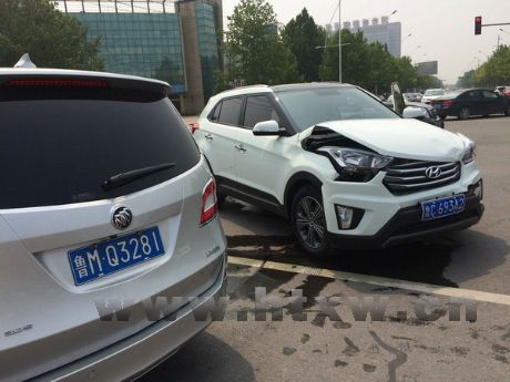 避让不及,两车路口相撞