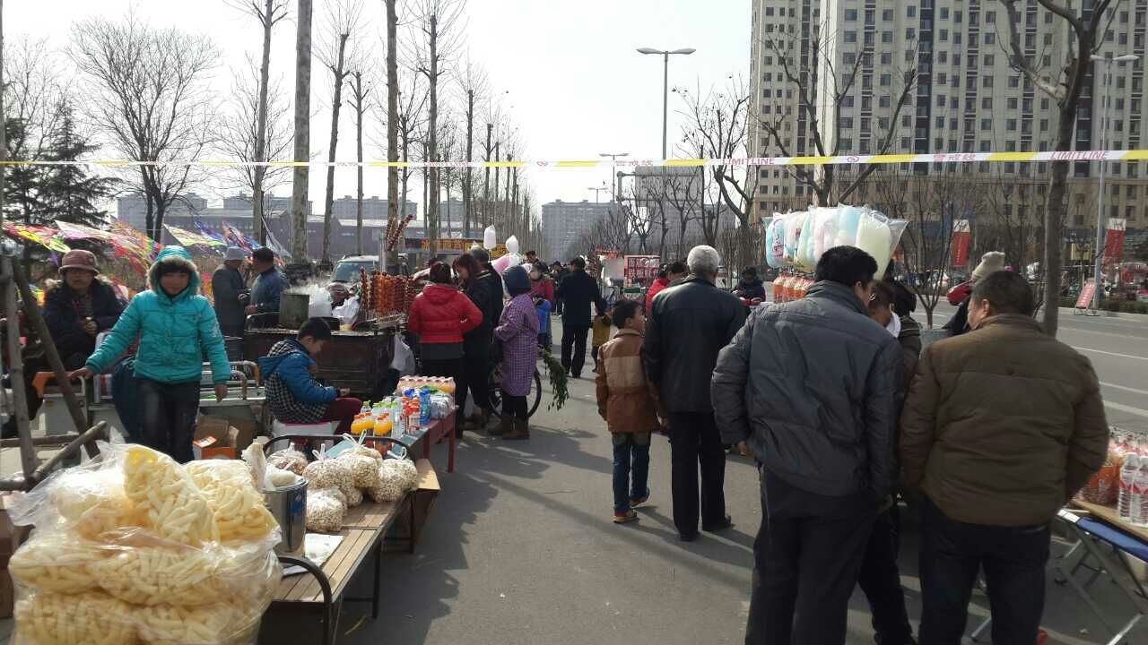 2015元宵扮玩现场,小贩们整齐的…