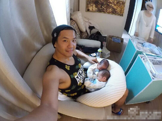 范玮琪老公晒与双胞胎儿子自拍 被…