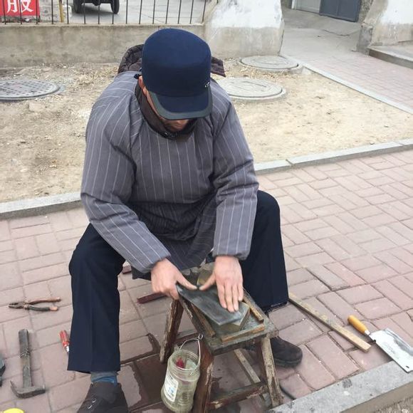 2月1日早,桓台城区街头磨刀人!