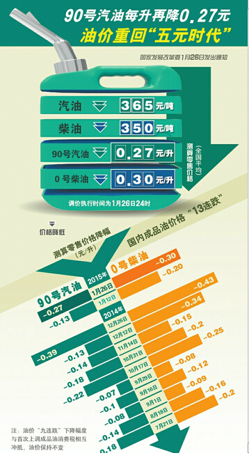 油价13连跌93号油每升5.62元 14连…