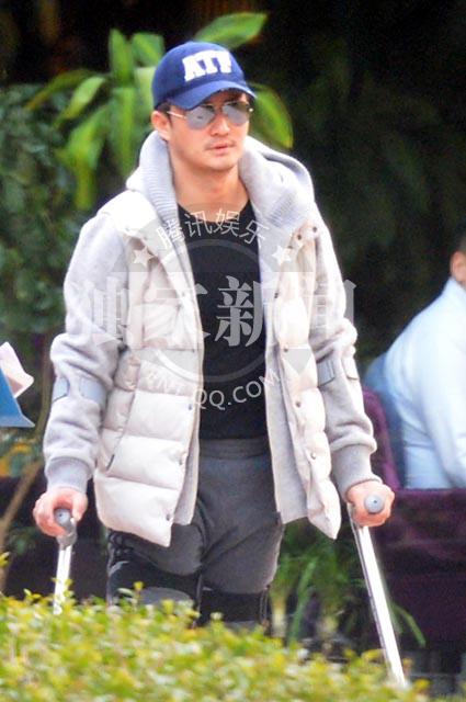吴京腿伤停工闲得发慌 拄拐遛弯会…