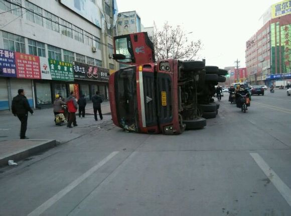 百货大楼一货车侧翻,来往车辆注…