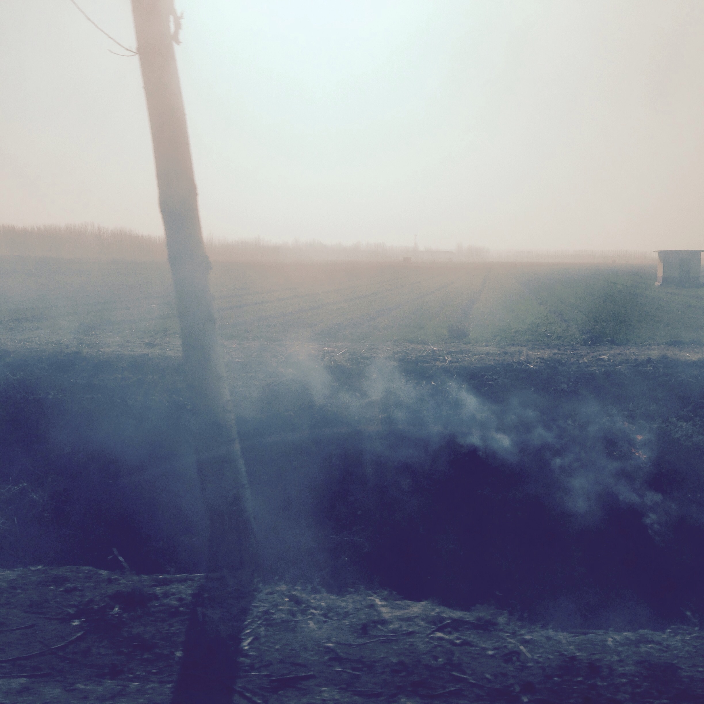 冬季麦田边有人焚烧枯草等