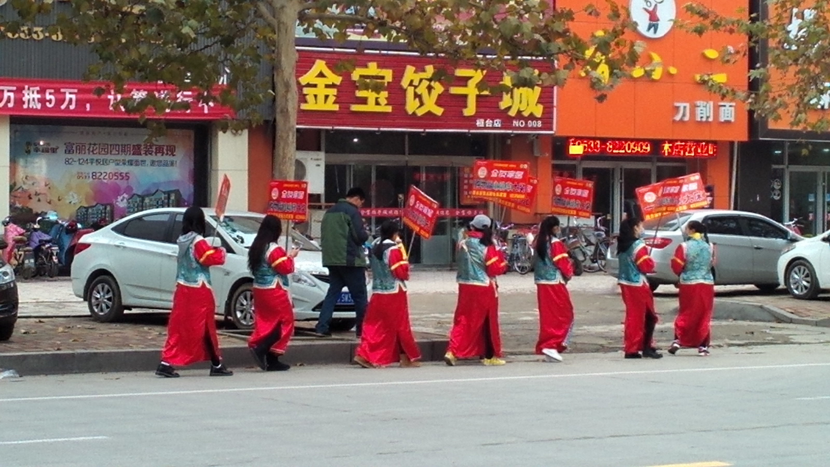 恒生地产的举牌宣传人员,走在人…