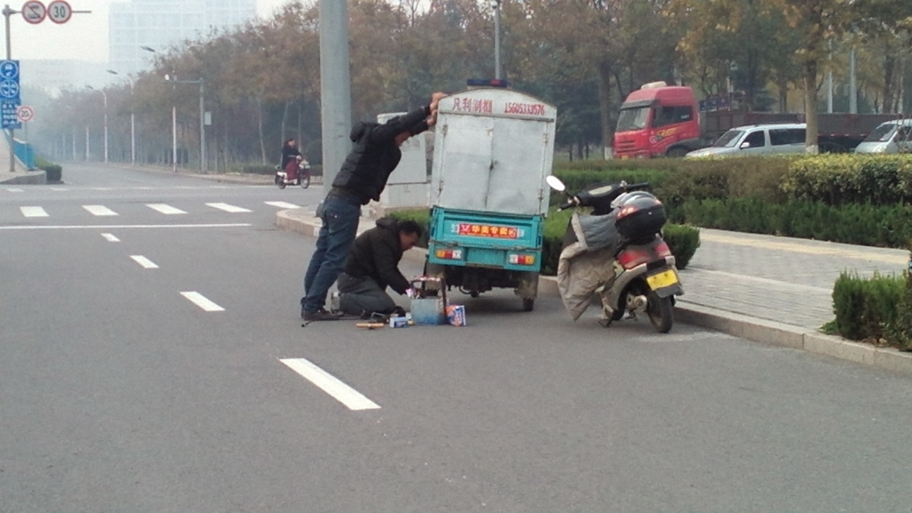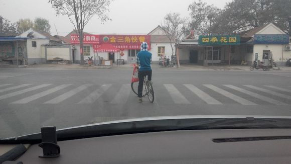 路中间骑自行车,危险!