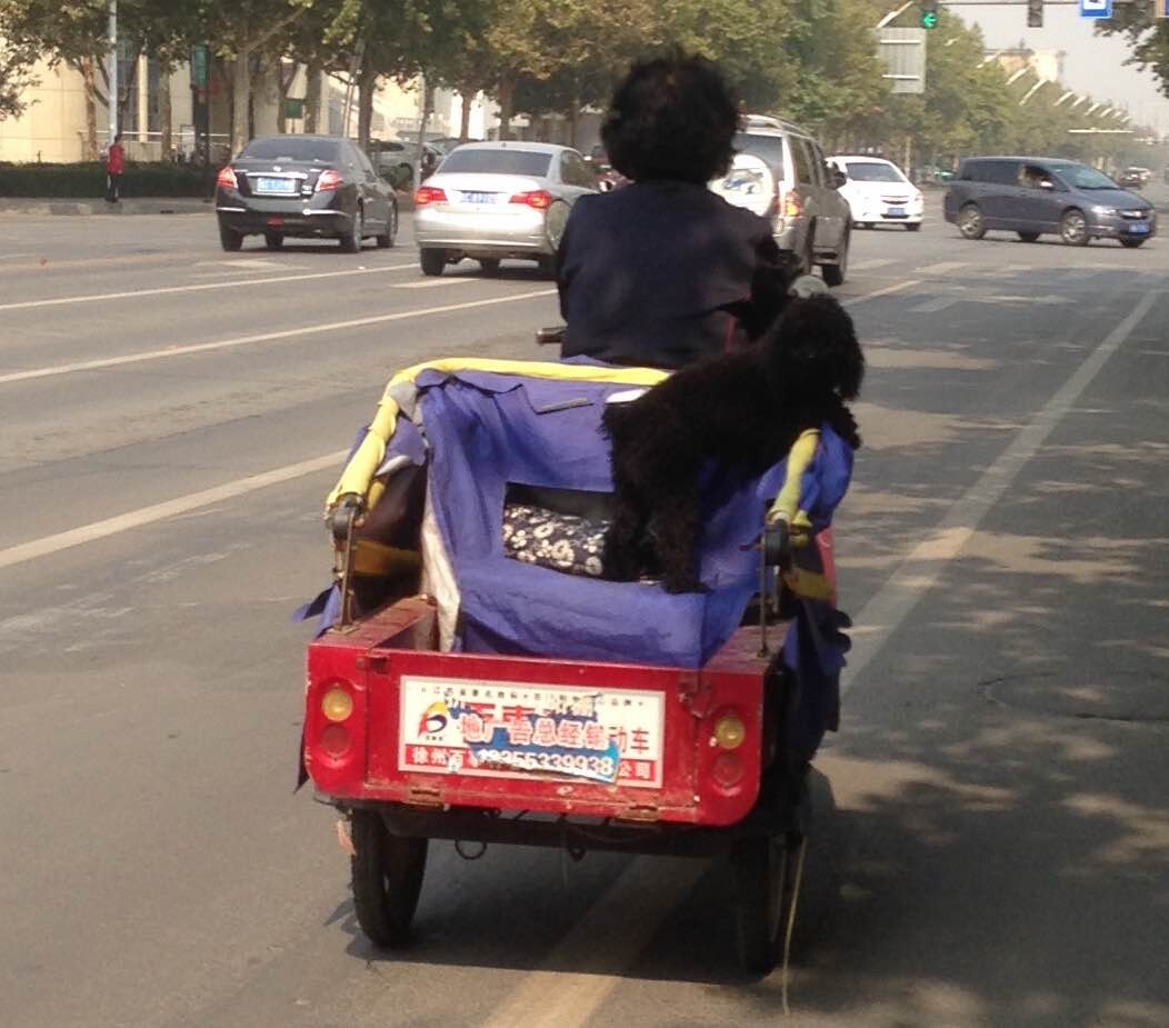 狗狗坐三轮车,摄于兴桓路建设街…