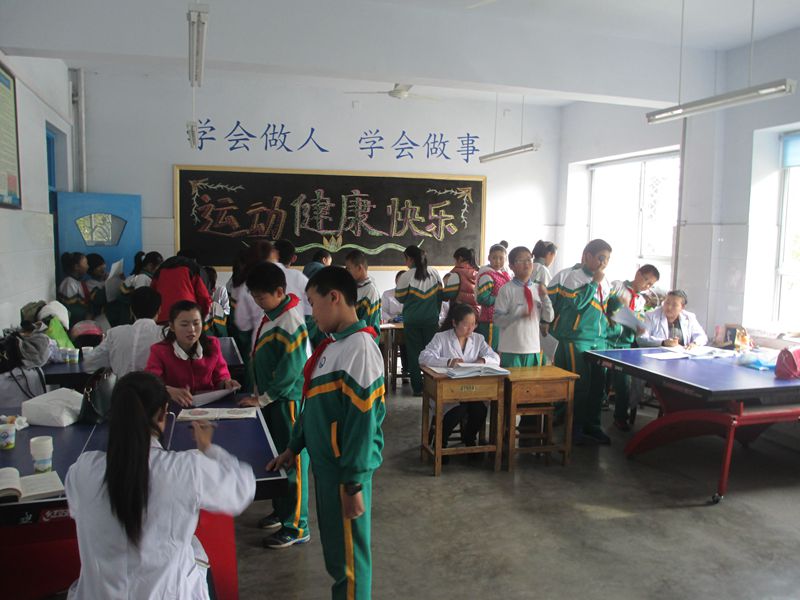 妇保院的医护人员对县第二小学的…