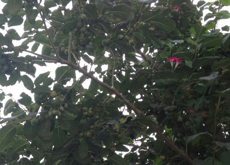 喇叭花爬上了大枣树