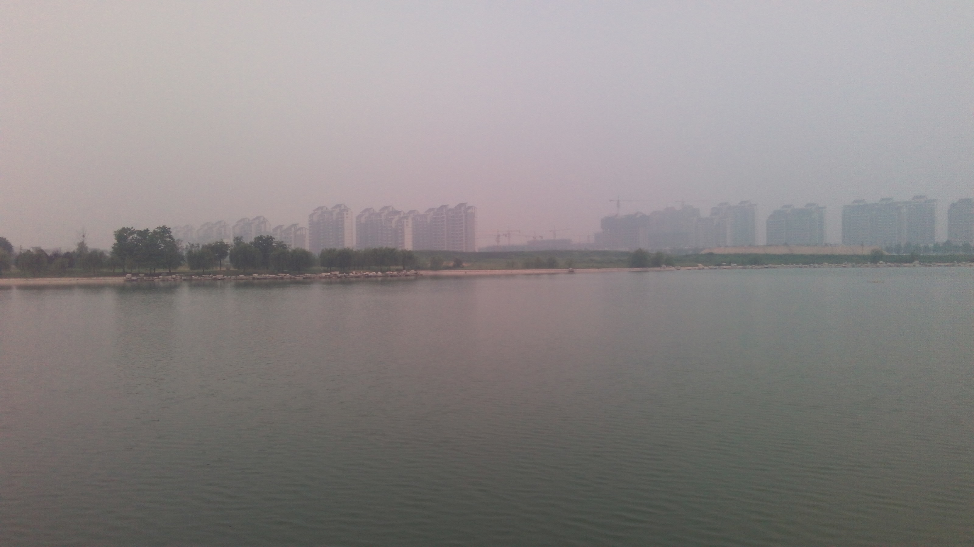 渔洋湖水色新丽,鸿嘉楼如立画中