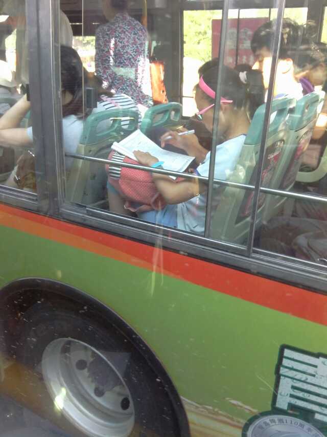 公交车上做作业对眼睛有害,请学…