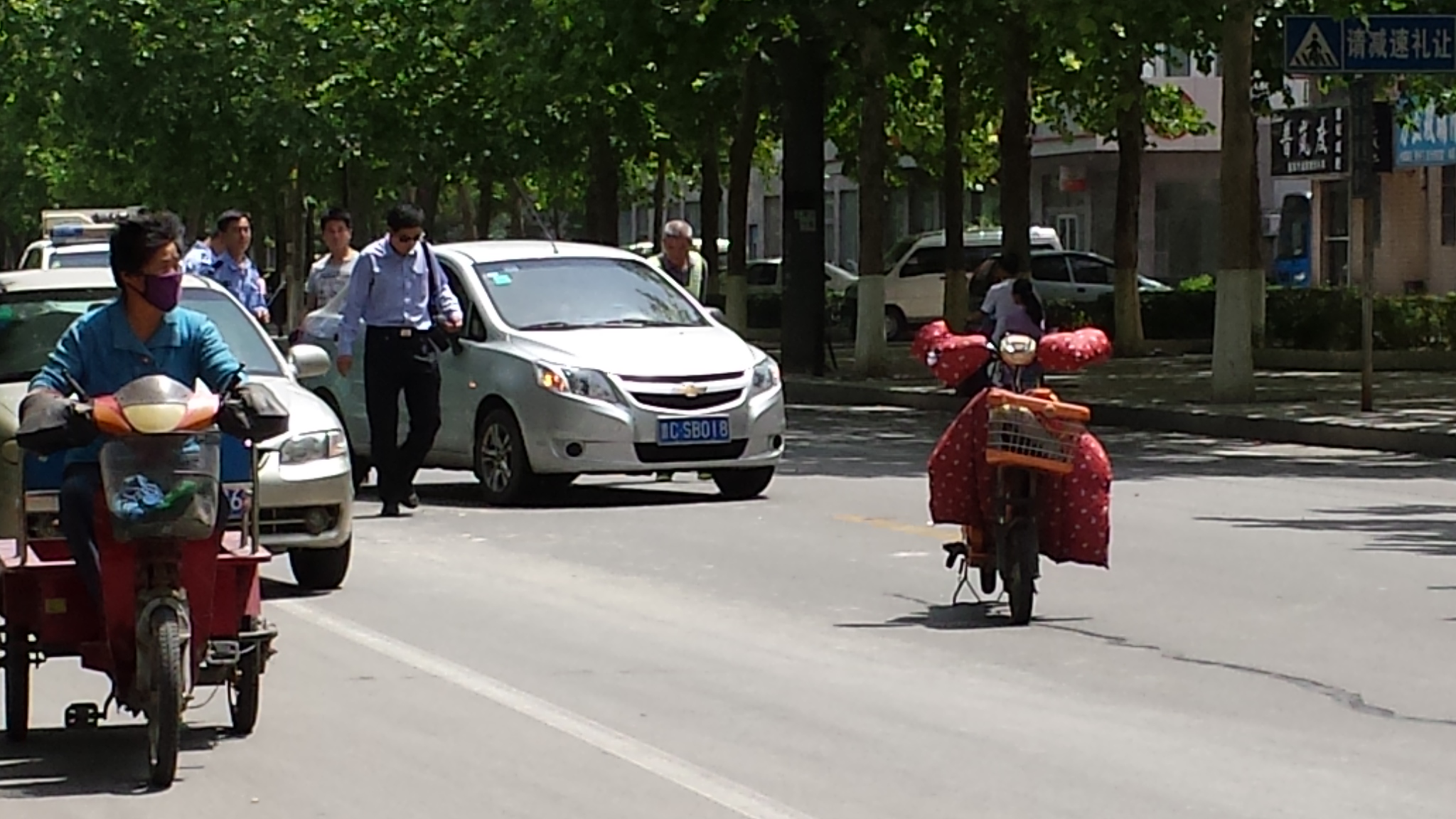 撞电动车了。