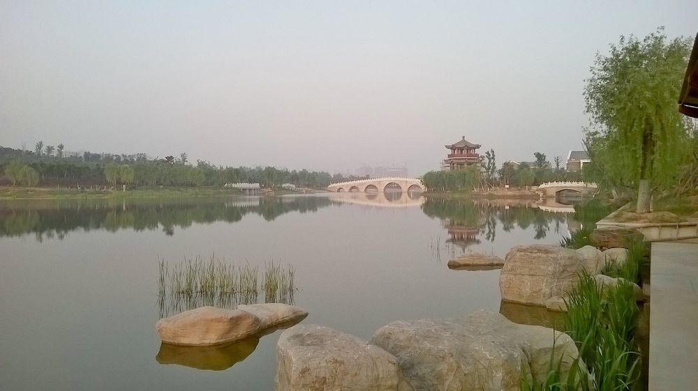 烟雨朦胧红莲湖