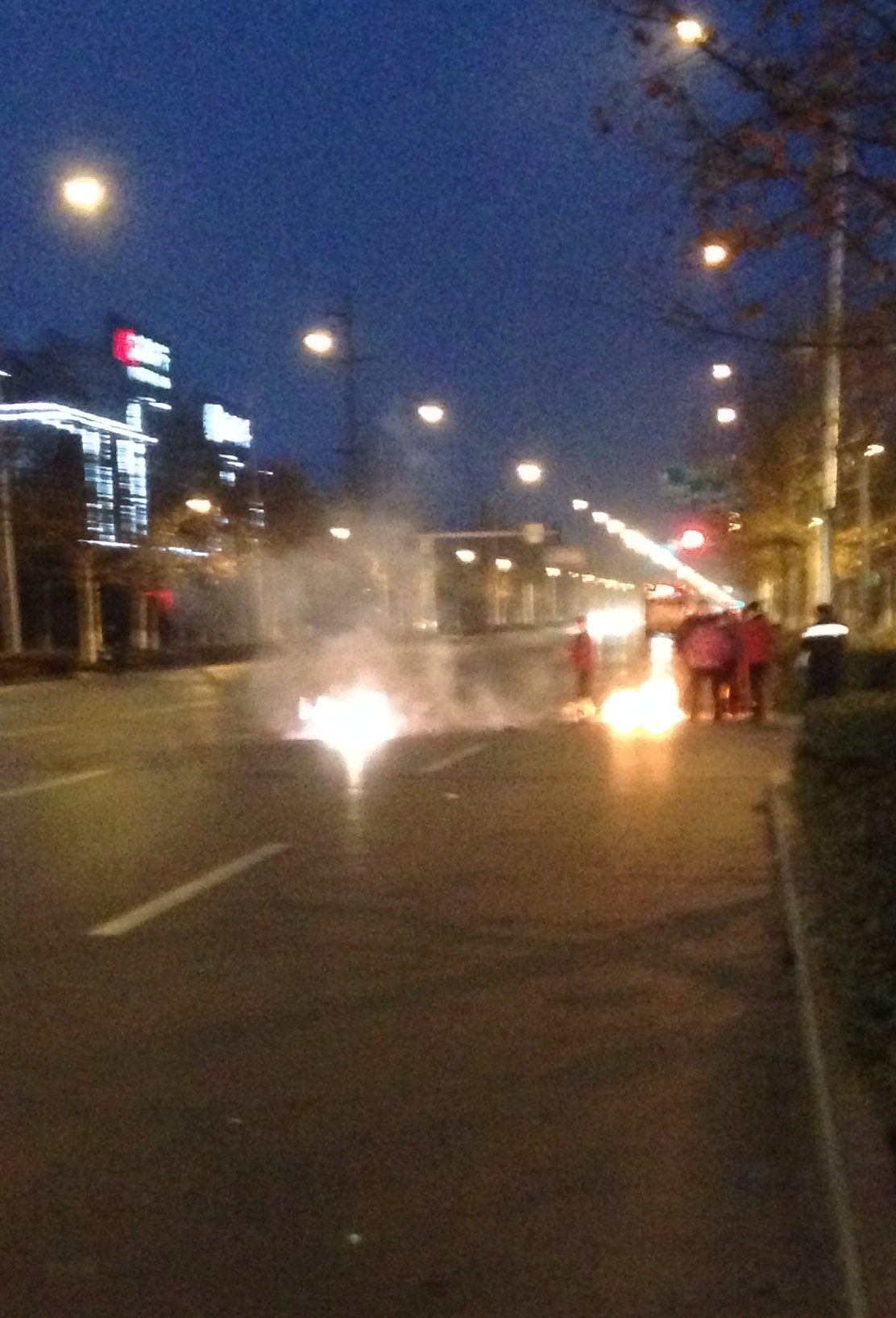 楼东边一公司放烟花已经持续半个…