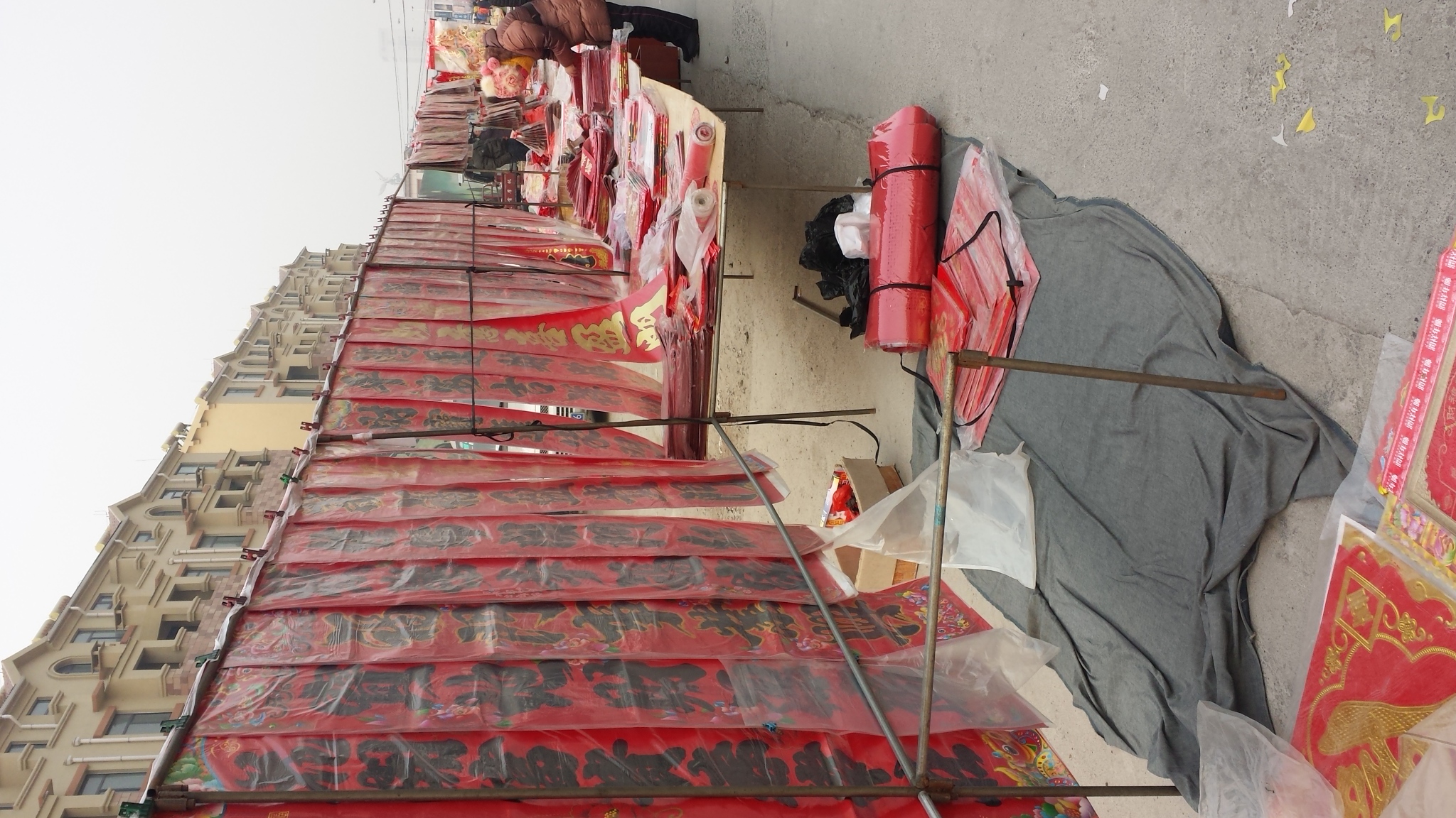 春节临近,集市上挂满了春联。