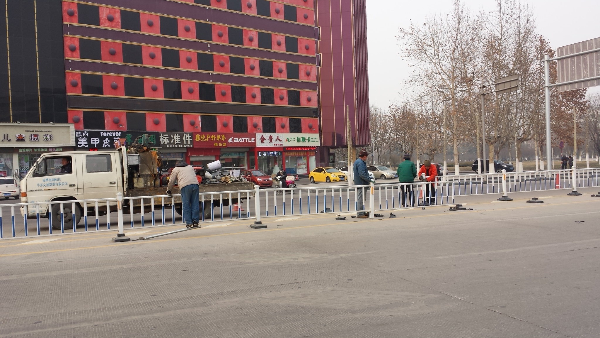信誉楼附近休整护栏,方便车辆通…